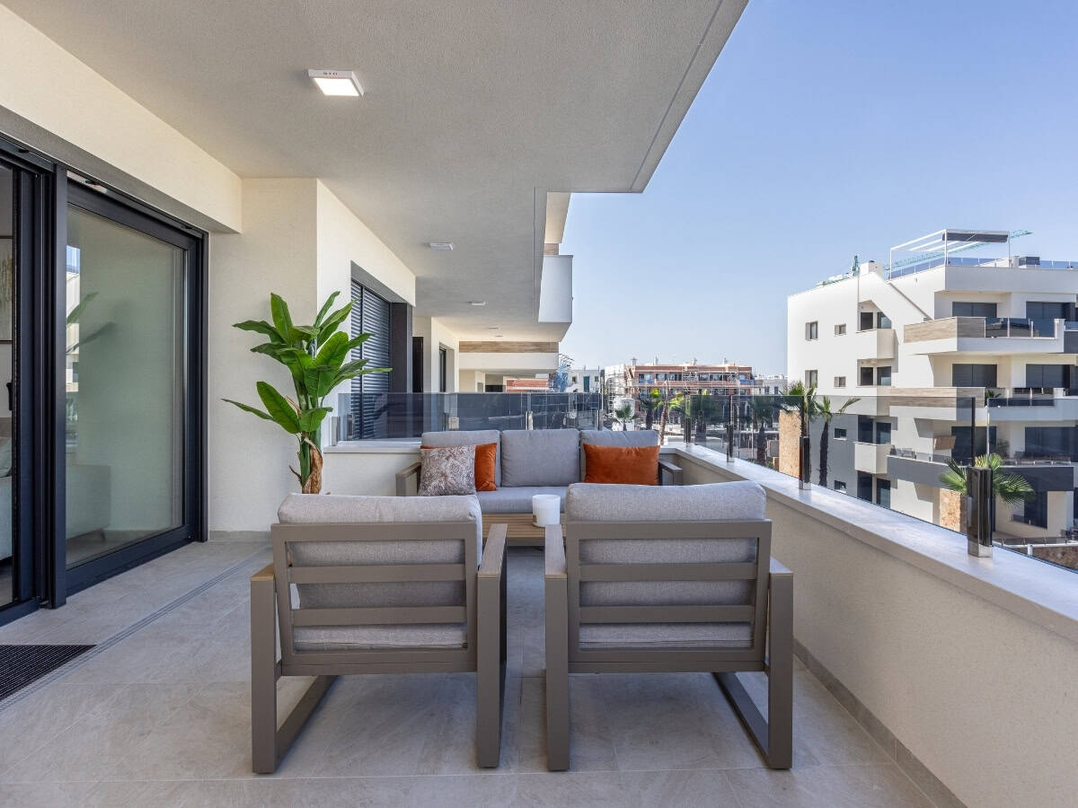 A bright first-floor apartment with private balcony, modern interiors, and resort-style amenities in one of Orihuela Costa’s newest residences.