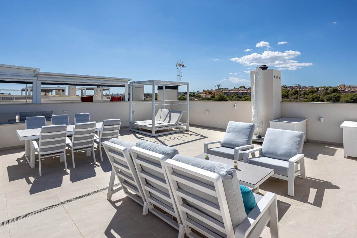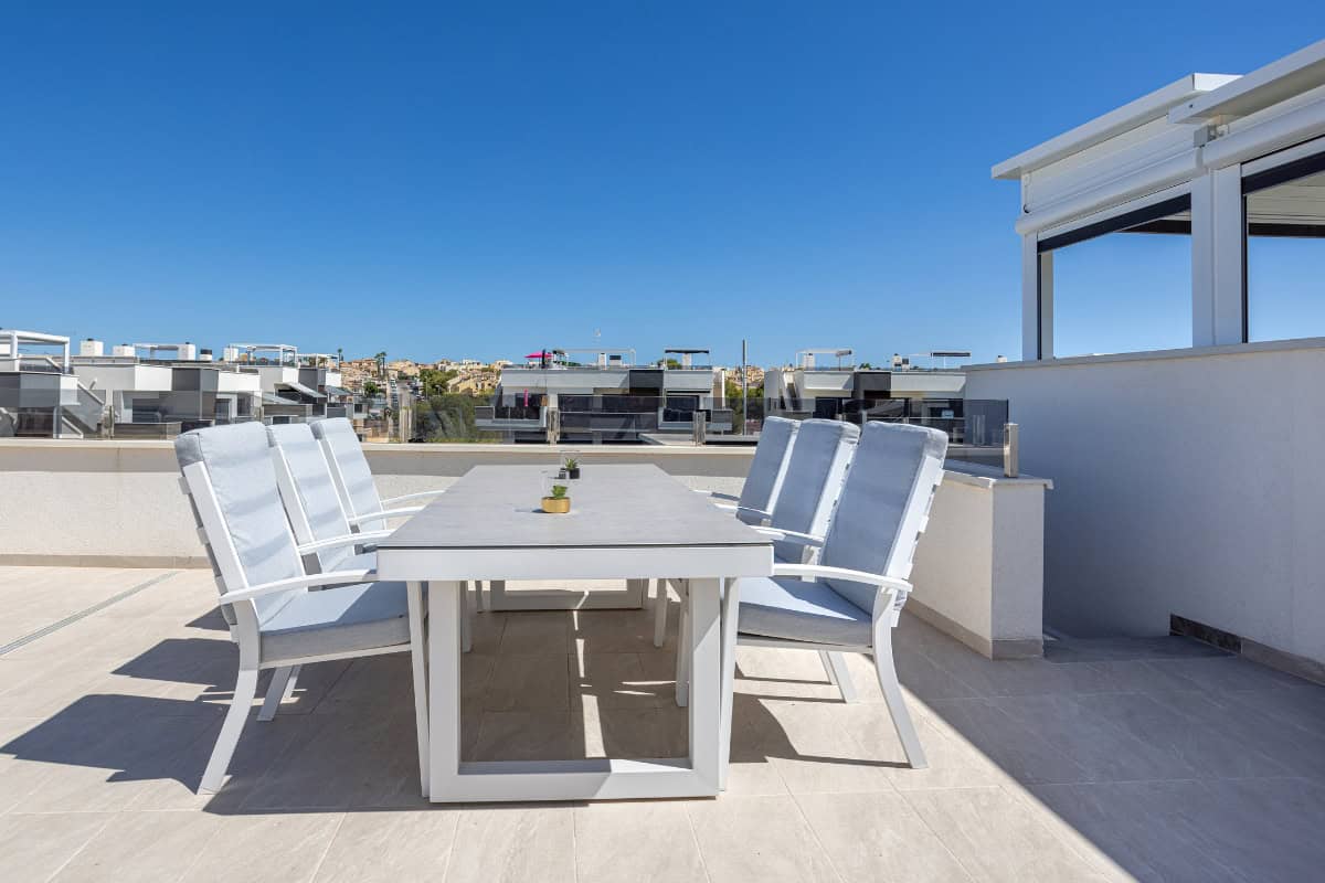 A modern penthouse with private rooftop solarium, pool access, and the perfect location to enjoy Costa Blanca South.