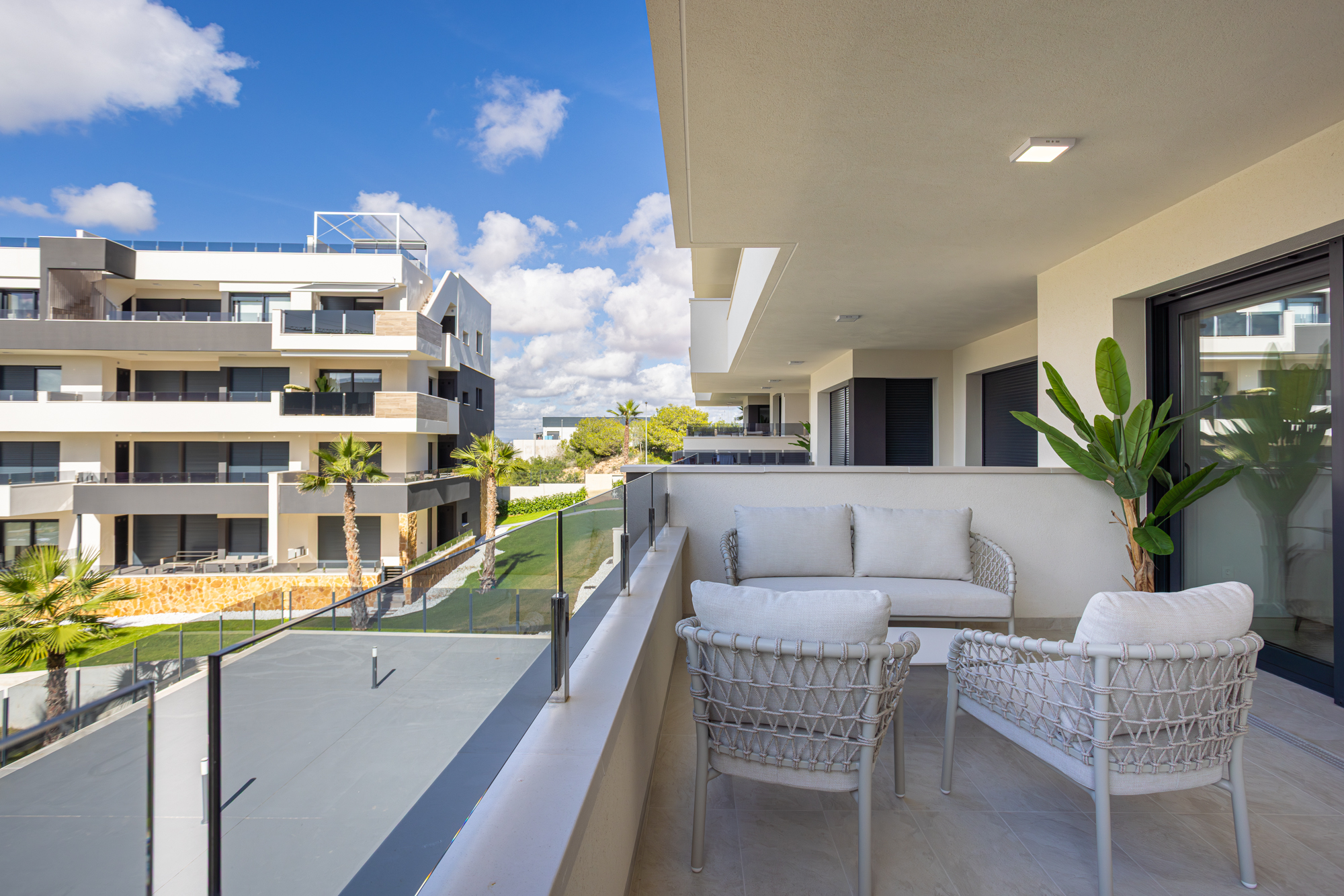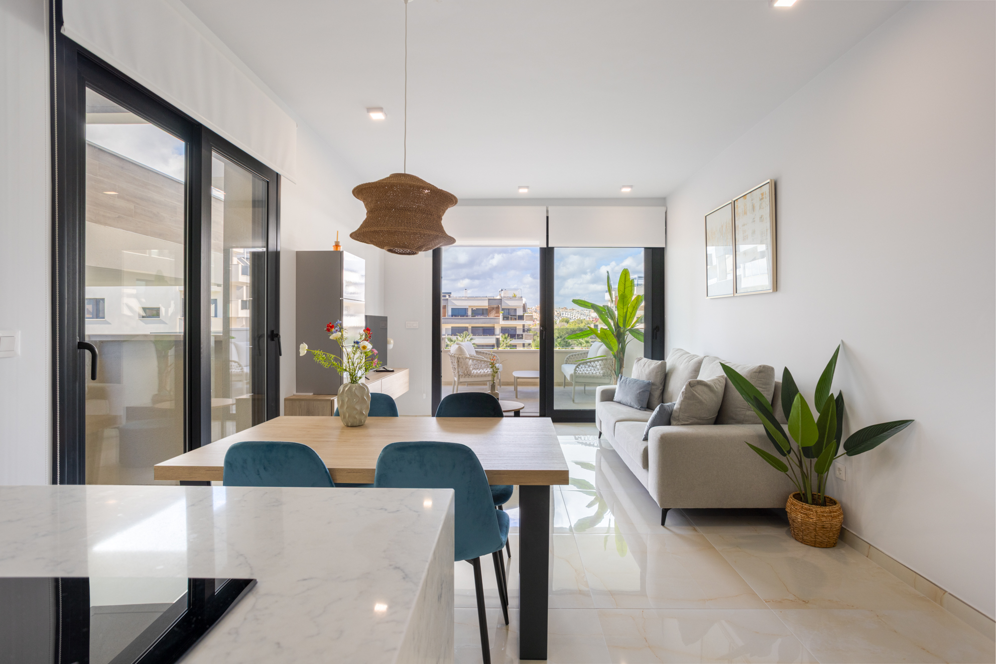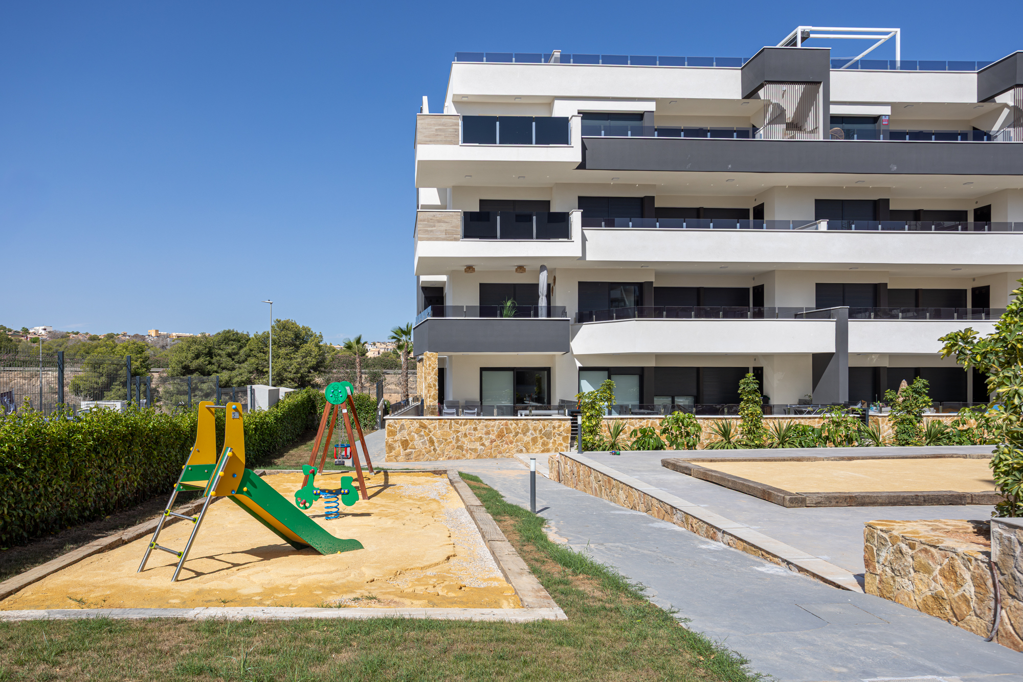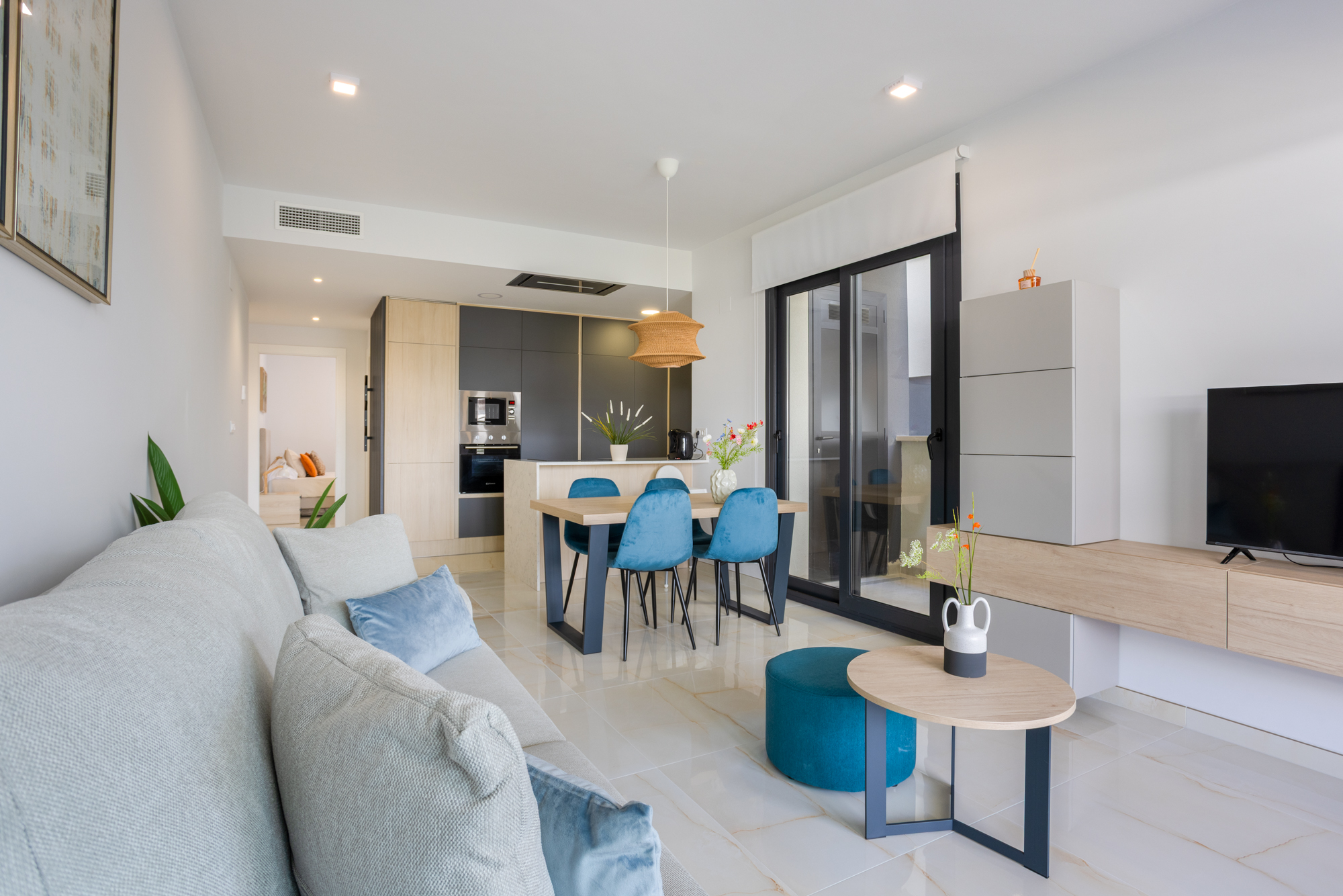 Luxury, comfort, and sea proximity in a premium new build. Casa Vida Moderna is a two-bedroom, two-bathroom apartment in the Amanecer XI complex offering 75 m² of modern interior space with a south-facing private terrace and private garden, ideal for families and couples who want high-quality outdoor space close to the beach and golf.