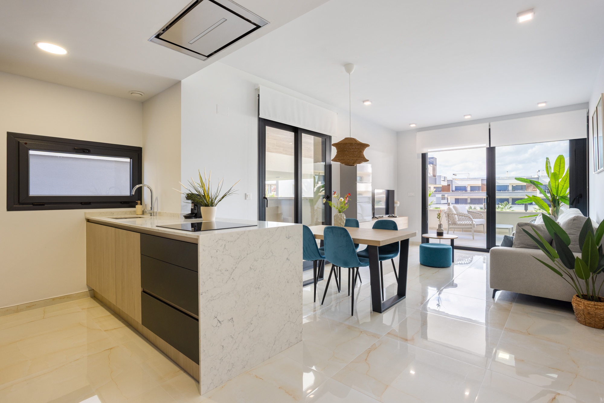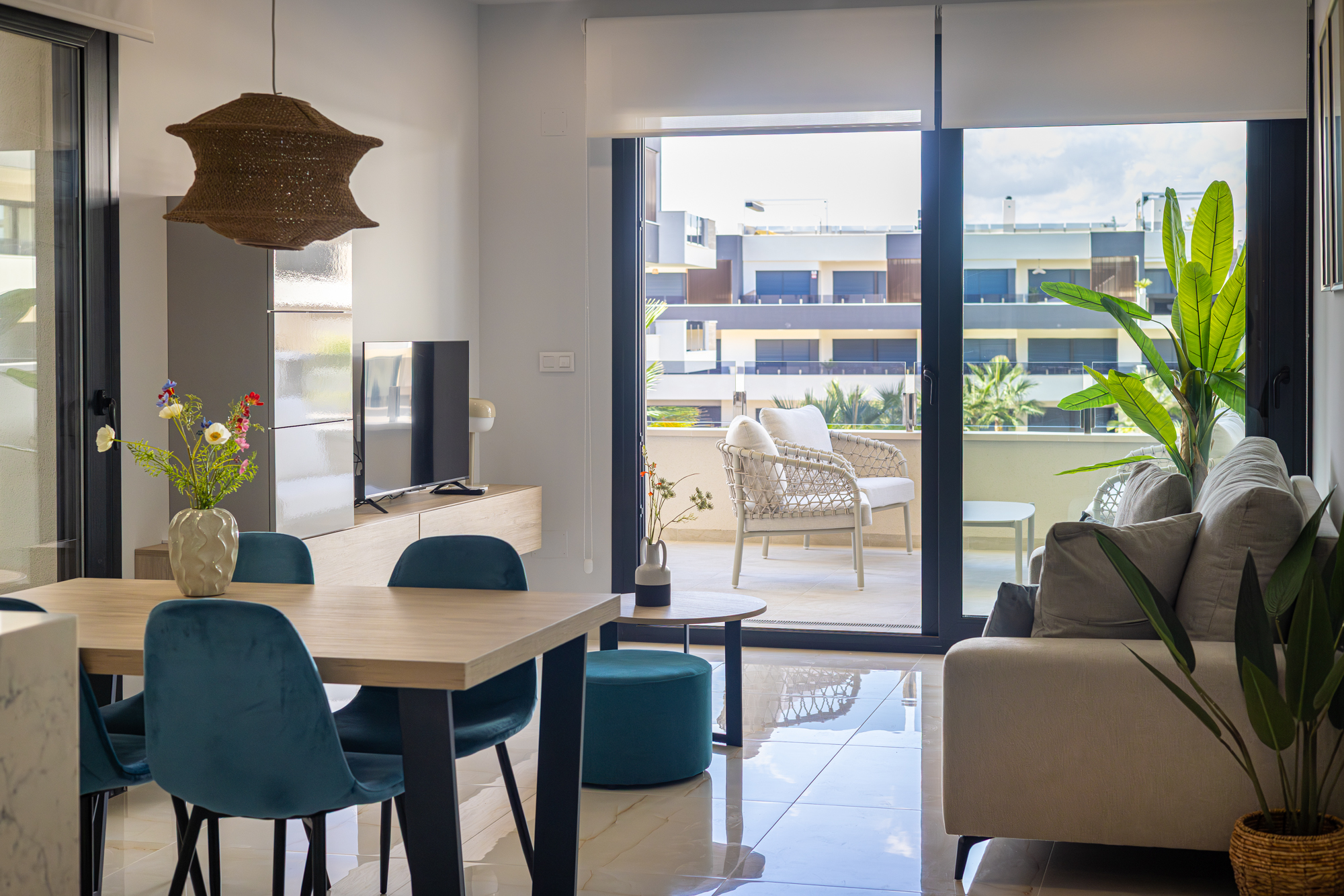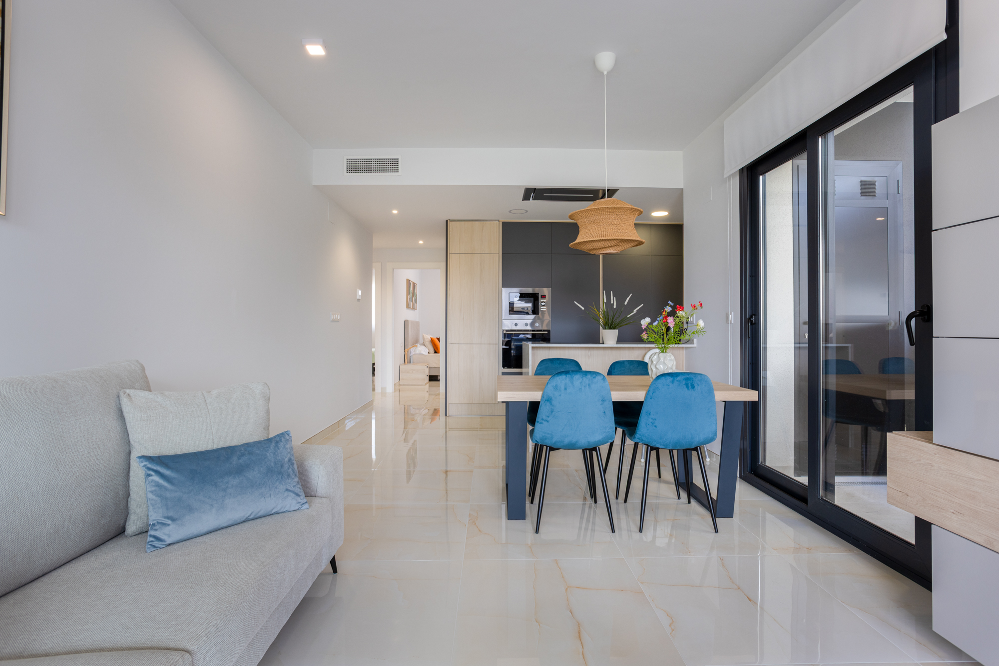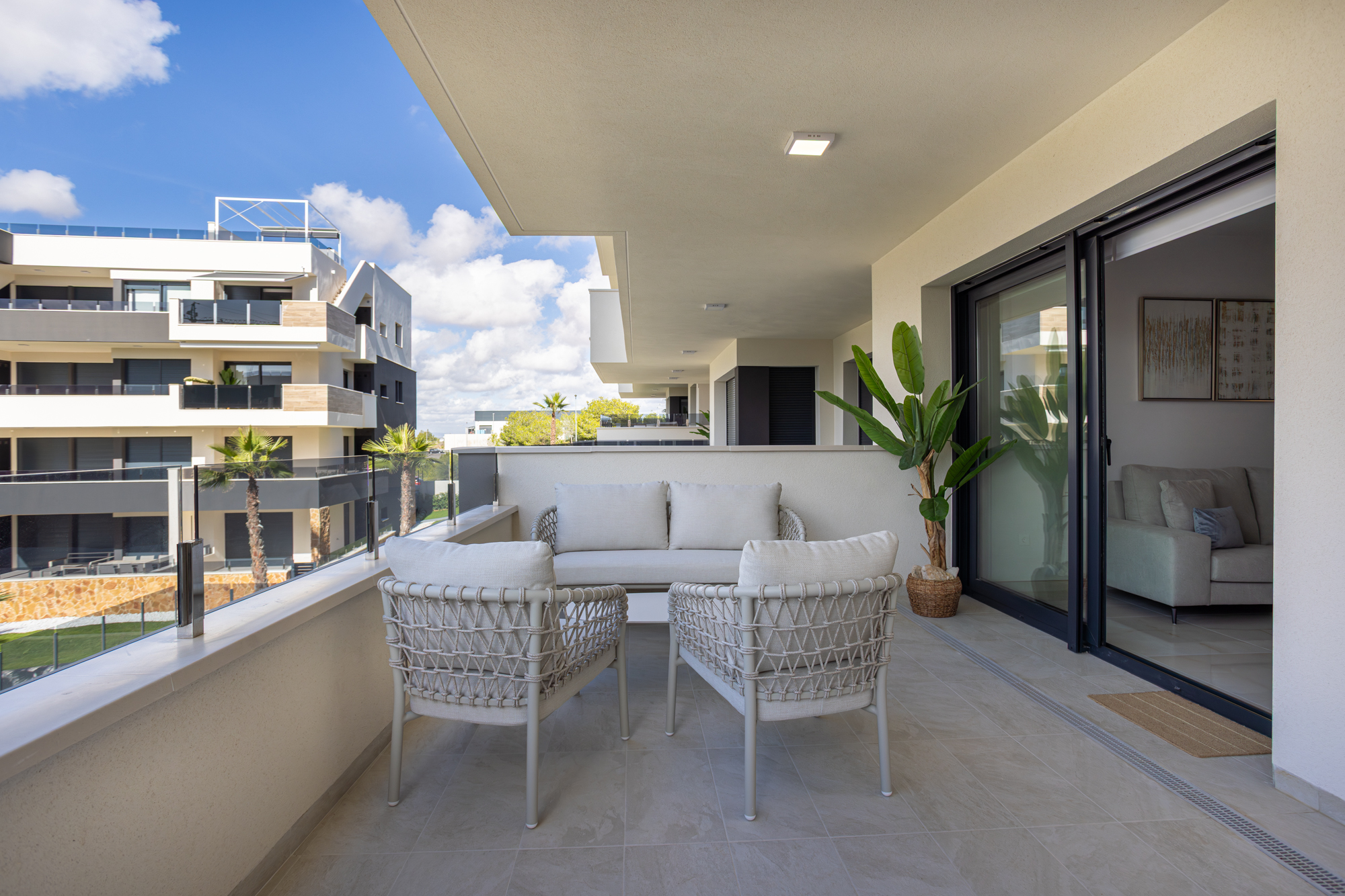 Luxury, comfort, and sea proximity in a premium new build. Casa Vida Moderna is a two-bedroom, two-bathroom apartment in the Amanecer XI complex offering 75 m² of modern interior space with a south-facing private terrace and private garden, ideal for families and couples who want high-quality outdoor space close to the beach and golf.