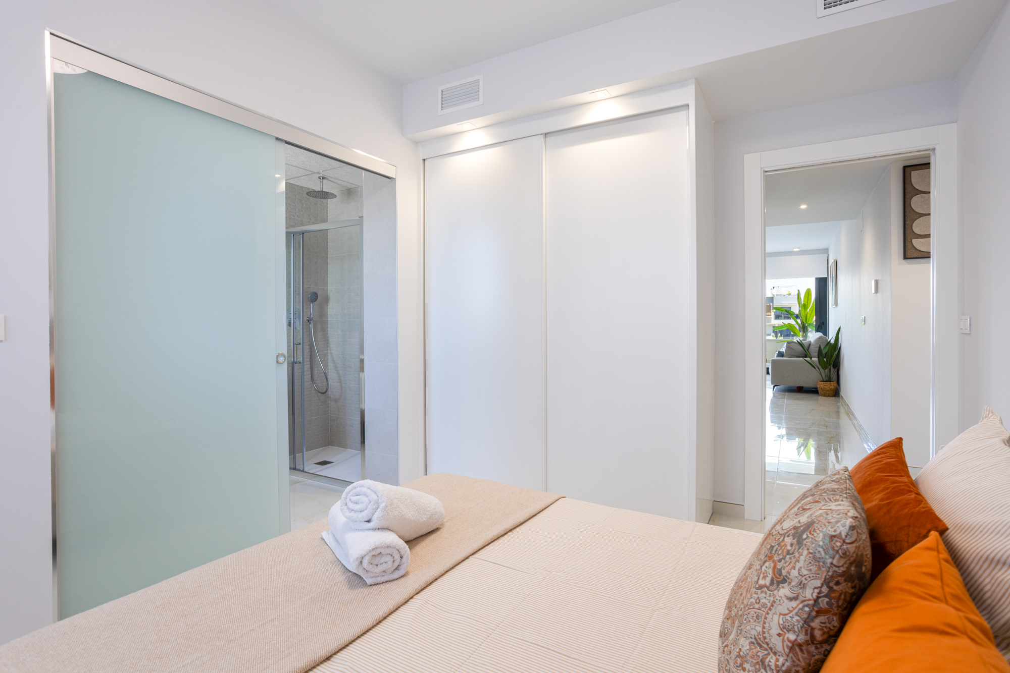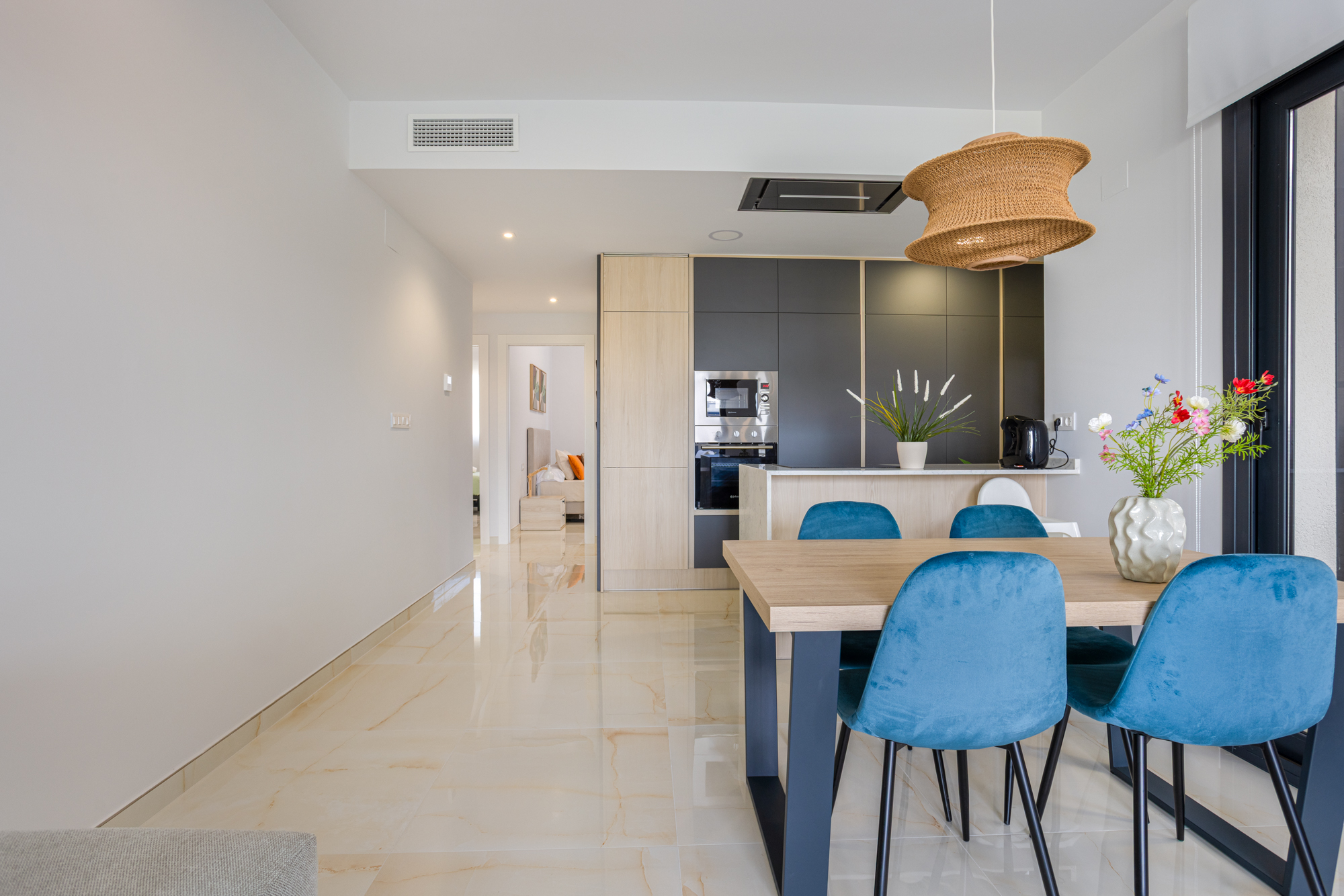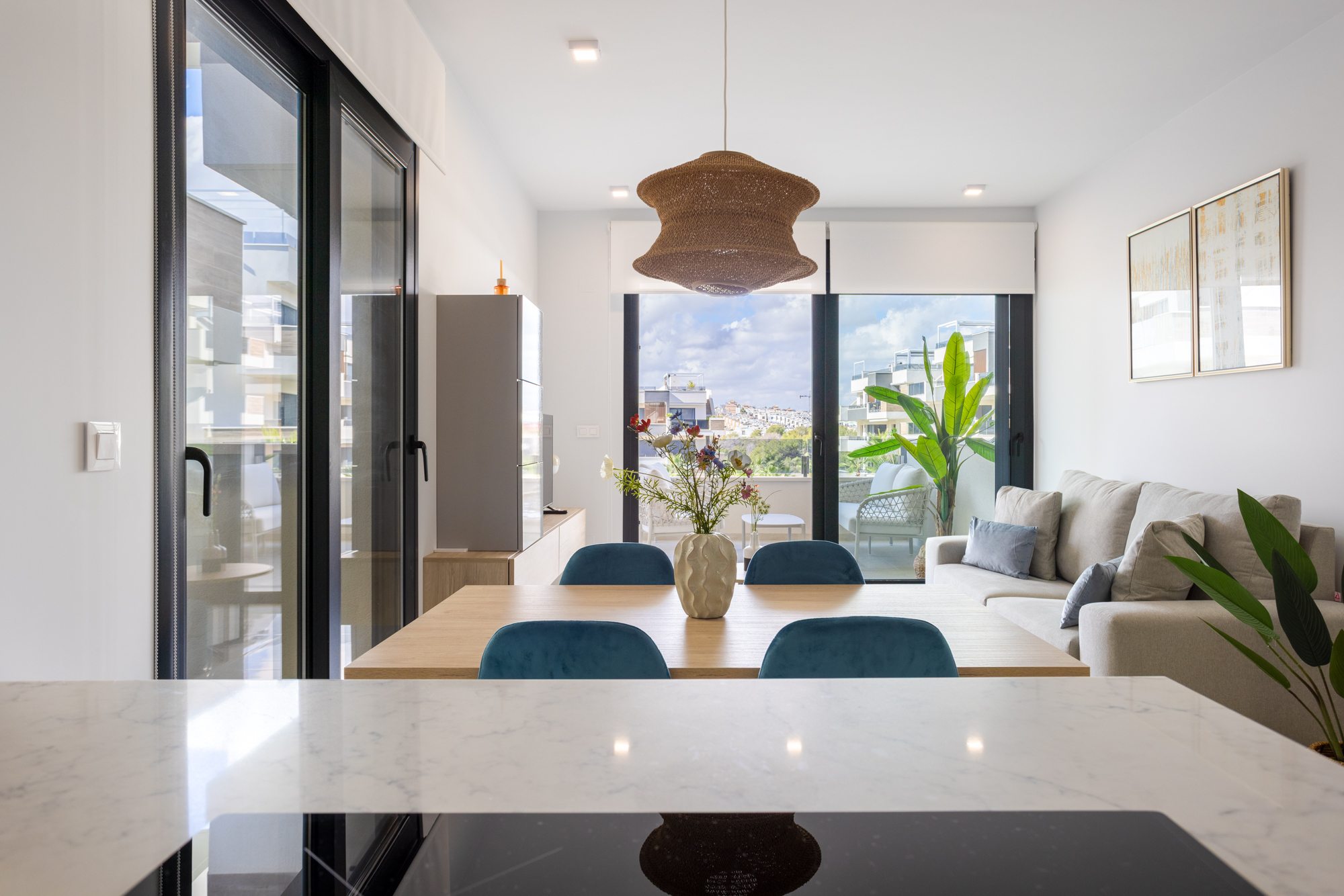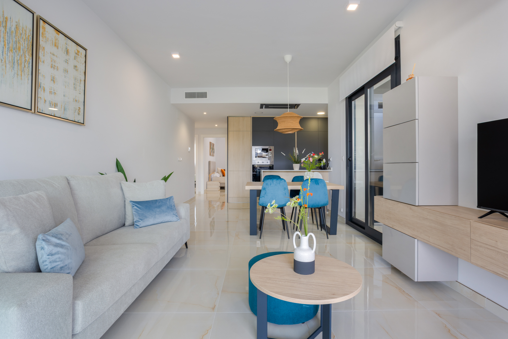 Luxury, comfort, and sea proximity in a premium new build. Casa Vida Moderna is a two-bedroom, two-bathroom apartment in the Amanecer XI complex offering 75 m² of modern interior space with a south-facing private terrace and private garden, ideal for families and couples who want high-quality outdoor space close to the beach and golf.